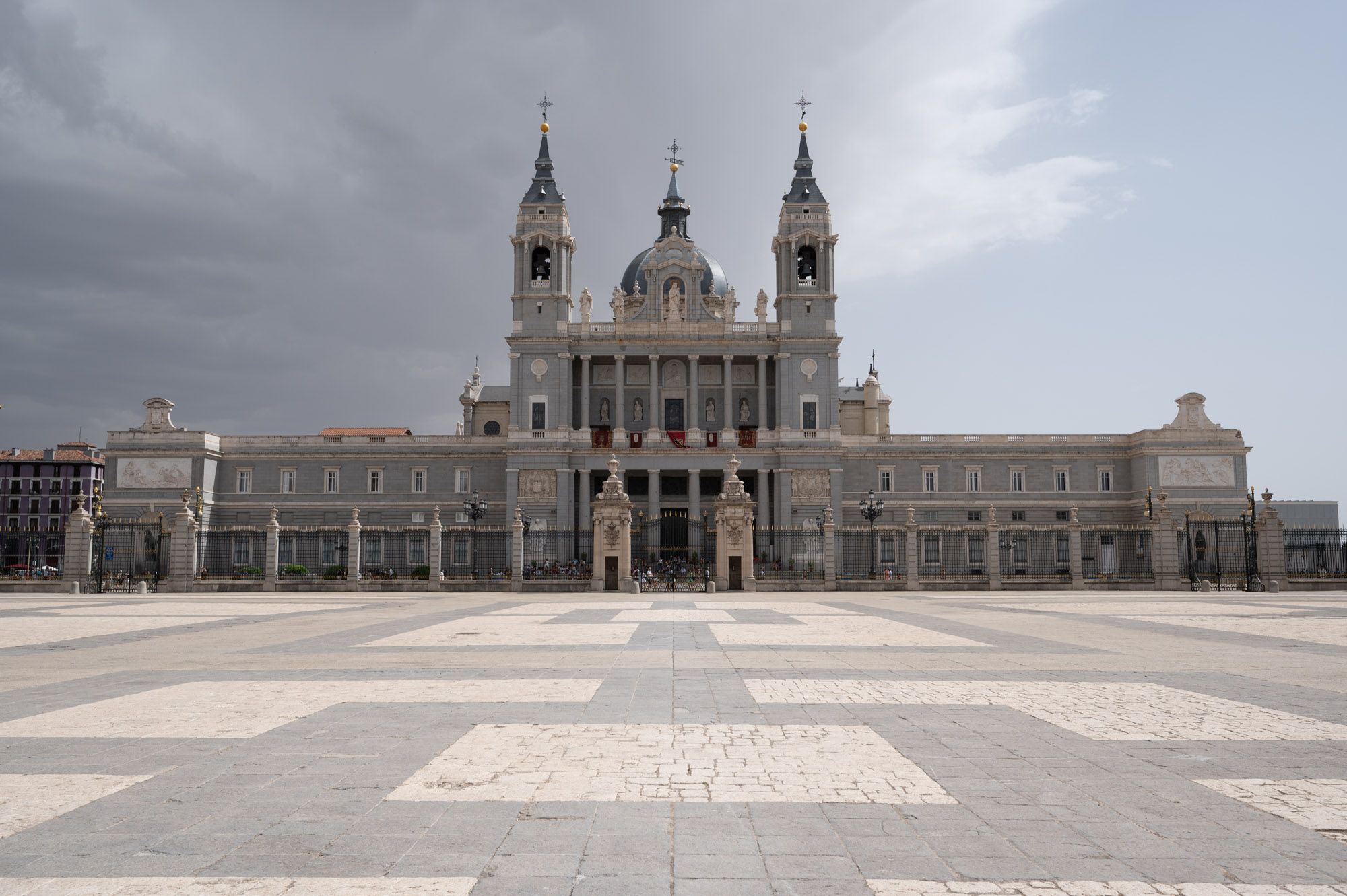 ตรงข้ามกับพระราชวัง เป็นที่ตั้งของ Almudena Cathedral ของมาดริด เป็น Cathedral ที่ใหม่มากเมื่อเทียบกับ Cathedral อื่น ๆ ของสเปน คือสร้างเสร็จในปี 1993 ข้างในมีกระจกสีแบบโมเดิร์น เพดาน Vault มีสีสันสดใส เข้าฟรี มีเวลาก็โฉบเข้าไปดู