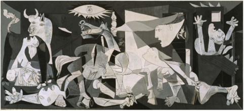 ประวัติ Guernica ต้องย้อนกลับไปปี 1937 ช่วงก่อนสงครามโลกครั้งที่ 2 และเป็นช่วงสงครามการเมืองของสเปนระหว่าง Nationlist นำโดยนายพล Francisco Franco กับฝั่ง Republicans ตอนนั้นนายพล Franco เป็นพันธมิตรกับฮิตเลอร์ของเยอรมัน นายพล Franco ติดต่อไปทางว่าอยากกำจัดศูนย์กลางการติดต่อสื่อสารของฝั่งตรงข้ามที่เมือง Guernica ในแคว้น Basque Country ตอนเหนือของสเปน ซึ่งเยอรมันตอนนั้นก็อยากจะซ้อมแสนยานุภาพกองทัพอากาศของตัวเอง เลยส่งเครื่องบินรบมาถล่มเมือง Guernica มีพลเรือนบาดเจ็บล้มตายมากมาย ฝั่ง Republicans เลยติดต่อไปยังปิกัสโซ่ ซึ่งเป็นชาวสเปน แต่อาศัยอยู่ปารีส เพื่อสร้างงานชิ้นนี้ขึ้นมา งานนี้ถือเป็นงาน Anti War ชิ้นสำคัญชิ้นหนึ่งของโลก ถูกนำไปแสดงทั่วโลก เพื่อเรี่ยไรเงินเพื่อช่วยเหลือผู้ลี้ภัยชาวสเปน และเป็นสัญลักษณ์ของสันติภาพ รูปจริงขนาดใหญ่เท่าฝาบ้าน รายละเอียดของรูปเยอะมาก แนะนำให้หาข้อมูลก่อนดู เพื่อเพิ่มอรรถรสในการดู