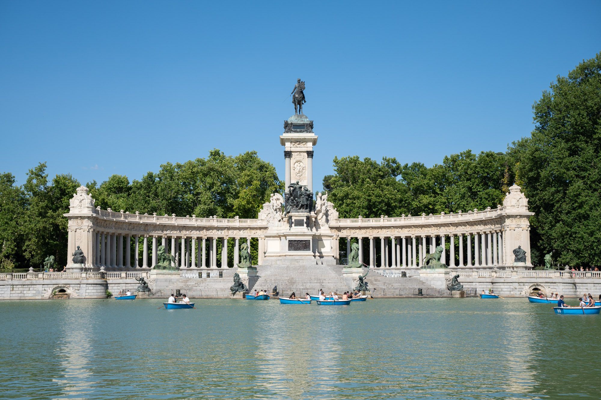 ในสวนมีไฮไลท์หลายจุด จุดแรกที่ไม่น่าจะพลาดคือทะเลสาบ ตั้งอยู่ใจกลางสวน เป็นทะเลสาบที่สร้างขึ้นมาระหว่างปี 1634 - 1636 เคยใช้เป็นที่แสดงโชว์ทางน้ำ ซ้อมรบทางน้ำ หรือเอาไว้ให้ราชวงศ์ได้พายเรือเล่น ตรงกลางมีอนุสาวรีย์ของ King Alfonso XII ตั้งอยู่ กิจกรรมตรงนี้คงหนีไม่พ้นการพายเรือในทะเลสาปแห่งนี้ พายไม่เป็นไม่เป็นไร เราเห็นคนสเปนพายกันเปะปะ วน ๆ กันหลายคู่