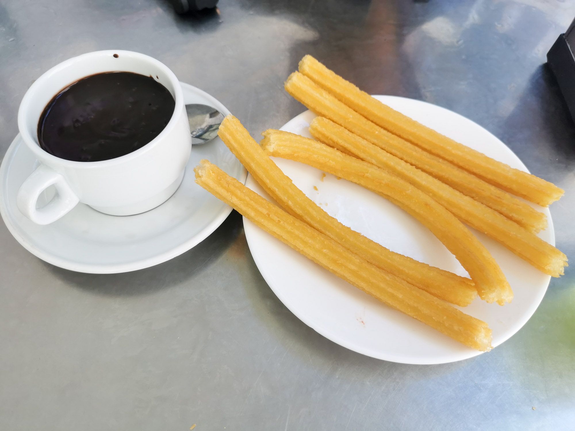 ของคาวจบ ต้องตบหวาน ขนมขึ้นชื่อของสเปนท่ีห้ามพลาด Chocolatería San Ginés ขาย Churros ที่อร่อยที่สุด ๆๆ Churro ทอดกรอบ เค็ม ๆ มัน ๆ แต่ทอดได้แล้วแห้ง ไม่มันเยิ้ม จิ้ม Chocolate ที่ดาร์คหน่อย ๆ ขมนิด ๆ มันสุดยอดมาก ๆ กิน Churro หมด ก็ไปซื้อมาเพิ่มได้ หรือแปลงช็อคโกแลตให้กลายเป็นเครื่องดื่ม ก็มีขายนมสดร้อนเอามาเติมให้ข้นน้อยลงได้อีกด้วย