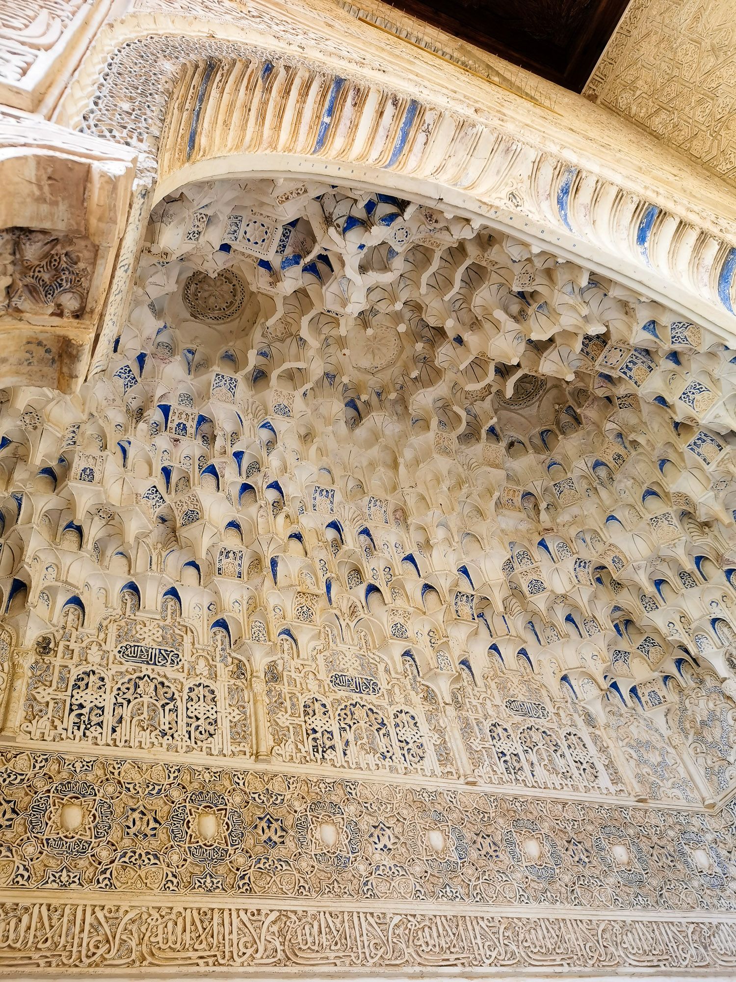 งานสถาปัตยกรรมเป็นแบบมุสลิมเป็นส่วนใหญ่ ลวดลายแปลกตาทรงเลขาคณิต ไม่มีภาพวาด หรืองานรูปปั้น สัดส่วนของรูปทรงได้สัดส่วนพอเหมาะ และสมมาตรกันอย่างที่คิดมาแล้ว บางส่วนจะมีการเพิ่มสัญลักษณ์ทางศานาคริสต์เป็นบางส่วน ซึ่งถูกเพิ่มเติมภายหลังจากที่ราชวงศ์คริสเตียนยึดครองได้