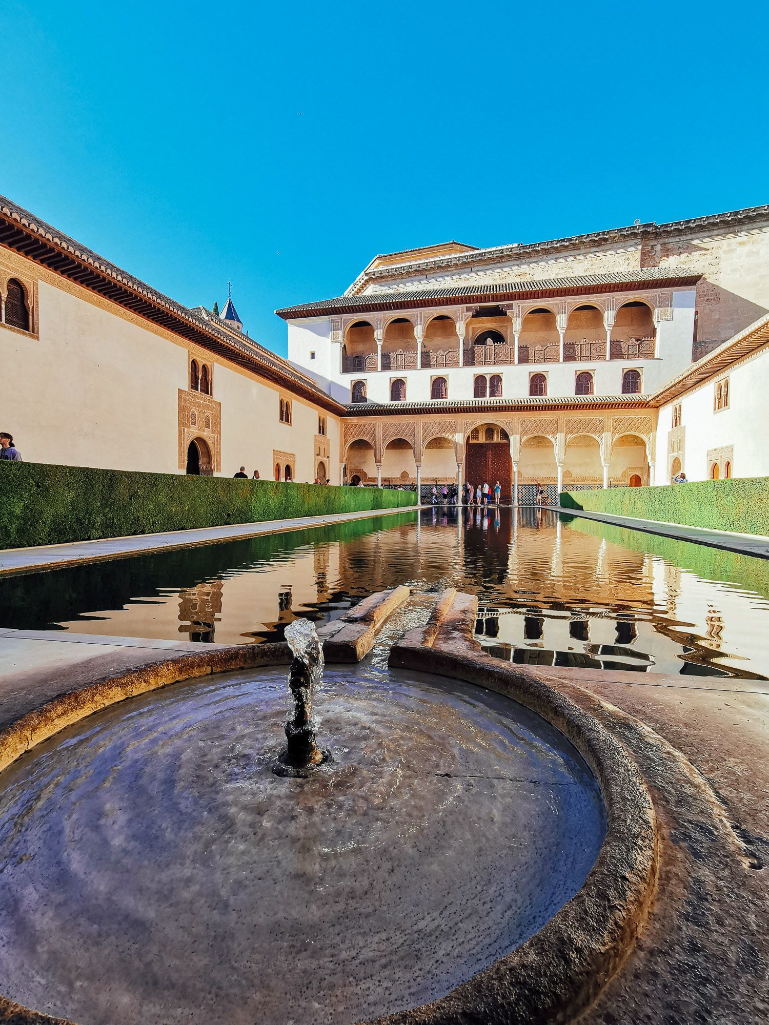 The Alhambra เป็นสถานที่ท่องเที่ยวสุดฮิต สุด Exotic ของสเปน ตั๋วหมดเร็วมาก แนะนำจองล่วงหน้า อย่าไปลุ้นซื้อตั๋วหน้างานเป็นอันขาด หลังจากซื้อตั๋ว ตั๋วจะระบุว่าให้เข้าชมได้กี่โมง ซึ่งจุดที่ระบุว่าเวลาให้เข้าชมเป๊ะ ๆ คือทางเข้าชมส่วนของ The Nasrid Palaces ซึ่งเป็นส่วนด้านใน ต้องเดินจากจุดขายตั๋วด้านหน้าไปหลายร้อยเมตร และคิวเข้า Nasrid Palaces ยาวมาก มีคำแนะนำให้ไปถึง The Alhambra ก่อนเวลาที่ระบุในตั๋ว 90 นาที