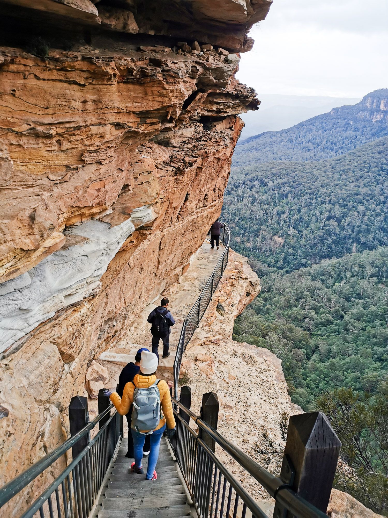 จะผ่านน้ำตก Wentworths มุ่งหน้าสู่ Grand Stairway ซึ่งเป็น บันไดที่จะพาลงไปสู่ด้านล่างของน้ำตก และหุบเขา เป็นบันไดเก่าแก่ที่สร้างตั้งแต่ปี 1906 โดยกัปตัน James Murray และทีมงาน สร้างด้วยมือ และพลั่ว (มีระเบิดช่วยด้วยนิดหน่อย) เพิ่งจะเปิดอีกครั้งหลังจากปิดซ่อมแซมในปี 2002 บันไดมีประมาณ 500 ขั้น แต่เราไม่ได้เดินลงไป แค่ชมวิวอยู่ด้านบน และเดินกลับไปยังที่จอดรถโดยใช้ทาง Weeping Rock Curcuit
